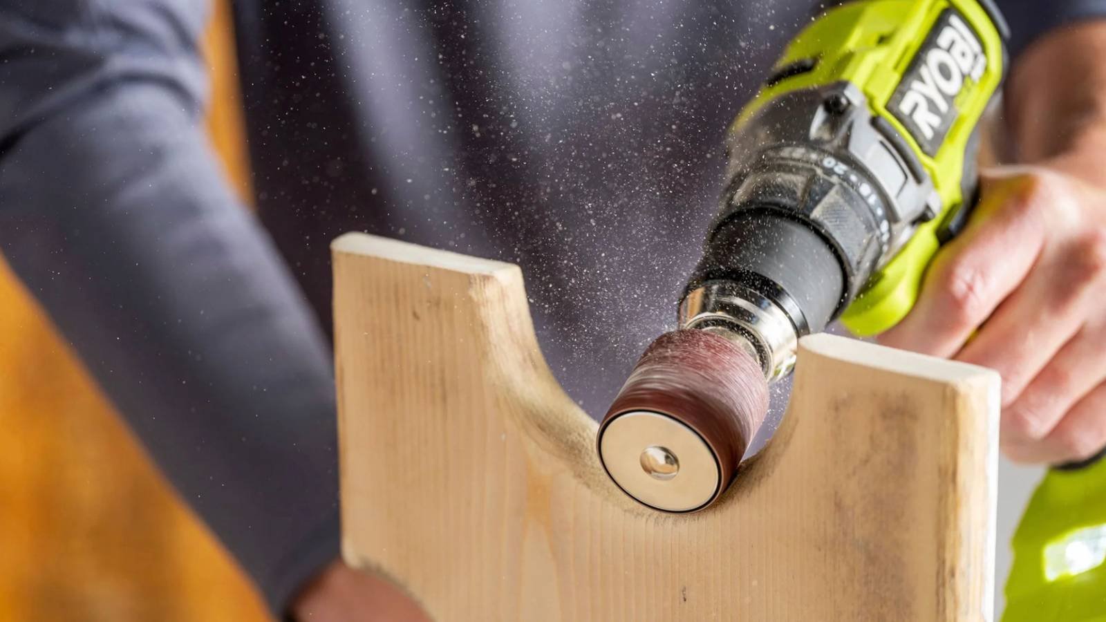 Ryobi drill sander attachment for wood Credit: Ryobi