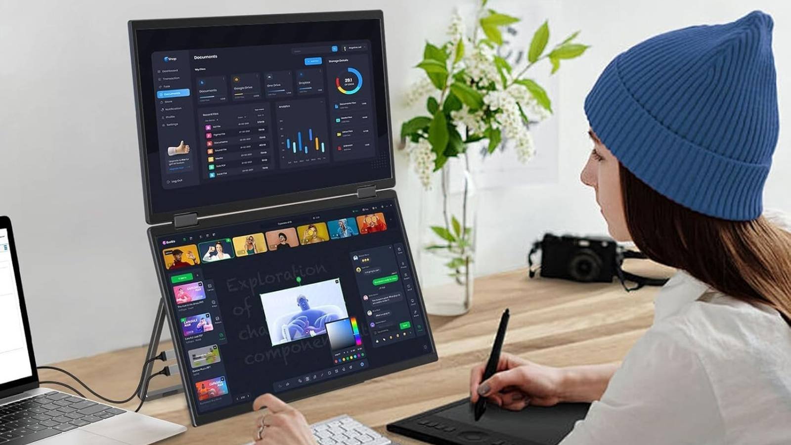 However, those looking to maximize their screen real estate while minimizing their footprint may want to consider going portable monitor. We’ve talked about this solution in detail before, but this one is a little more unique because it has a dual-screen design that can be used in several ways.