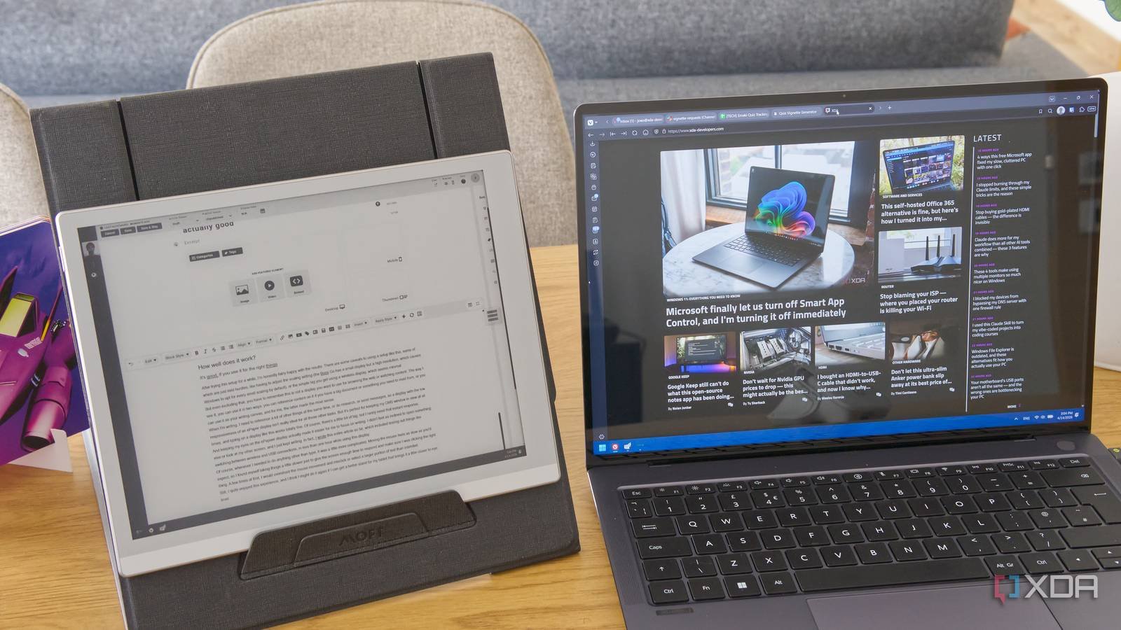 The laptop is used as a second monitor next to the Boox Gop 10.3 ePaper tablet